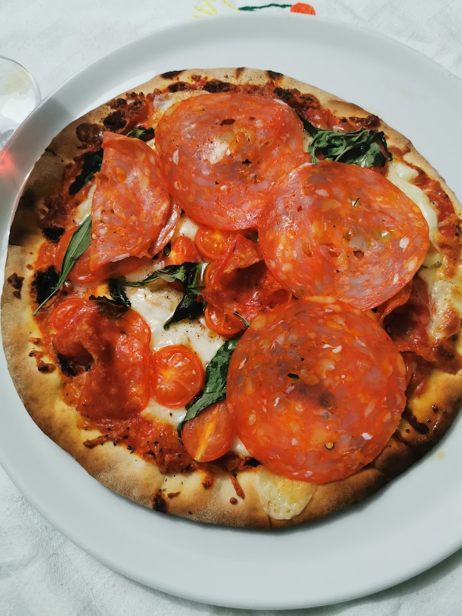 Buona pizzeria offre servizio di asporto e servizio al tavolo. Ingredienti ottimi , impasto leggero. Sembra essere cotta a forno a legno. Servizio gentile